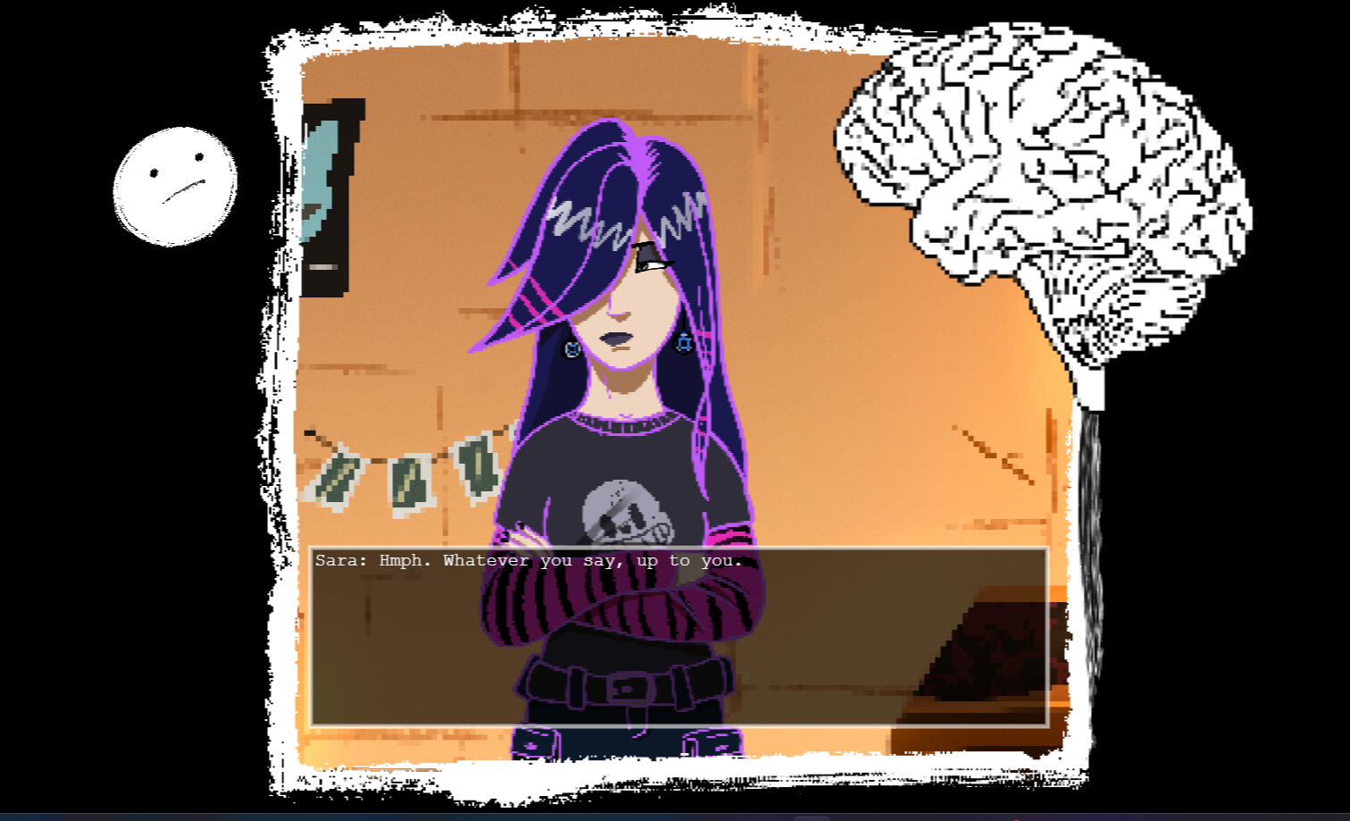 A team projects made in JavaScript with the p5 library, Julia Axiuk and I worked together to collaboratively bring "Think" to life based on her original concept pitch. The demo explores the main 'visual novel' style functions of the game as well as sets the tone for the project with the intention for future development. "Think" sets the player from the perspective of the main character's mind, guiding them through a story focusing on mental health while using a bold pixel art style. The demo can be played live via the following link.