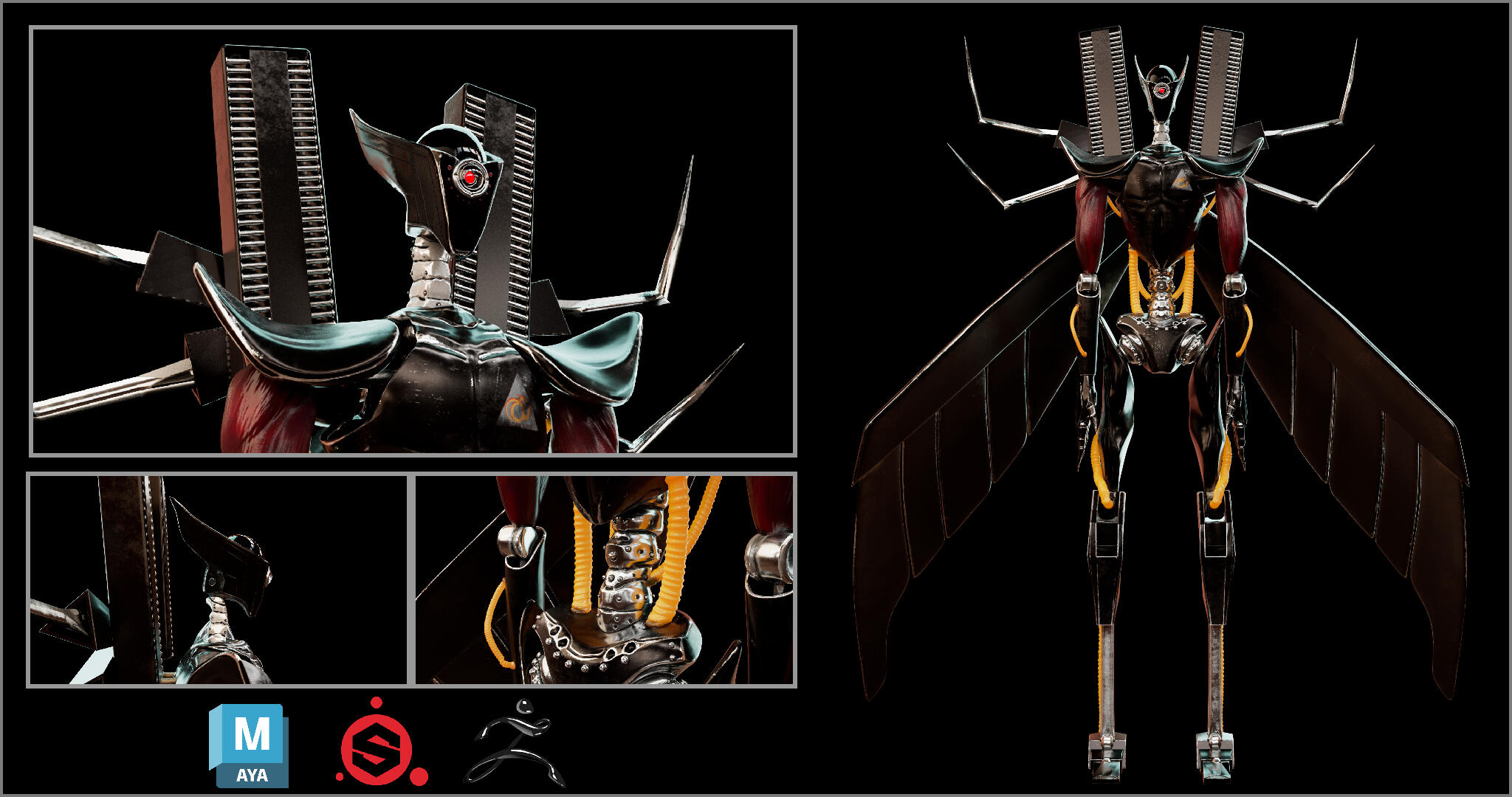 Personal Project, a 3D sculpt based off my original robot concept. It is currently optimized and ready to be rigged. The design came from a quick sketch I did which I decided to expand on in ZBrush before exporting it to Maya and Substance Painter. I decided to design it like it could be part of the same world as my film, Grow, as a more advanced version of the accompanying robots. This one includes organic elements, such as the living flesh on its arms, though even the mechanical elements still exhibit organic inspiration, such as the skeletal design of the neck and spine.